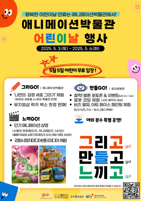 춘천 애니메이션 박물관 - 연휴기간 중 다양한 전시, 체험, 교육행사가 열릴 예정이구요. 특히 5월 5일은 어린이들 무료 입장이예요.^^